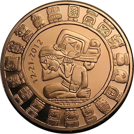 Die 1 oz Kupfermünze des Maya Kalender stammt aus den U.S.A. und wird dort als sogenannte „Copper Round“ oder „Kufpermedaille“ gehandelt. Das Motiv ist in den USA einer der Bestseller und wird ohne Nennwertgeber von einer sog. „Private Mint“ geprägt.