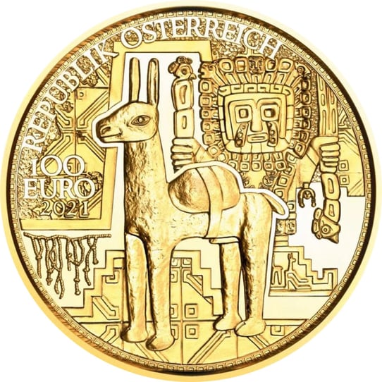 Historisches Kunstwerk: Einzigartige 100 Euro Goldmünze mit stilisiertem Lama-Motiv, eingetaucht in die Inka-Kultur