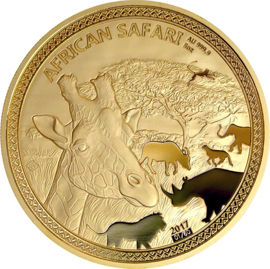 Am 01. April 2017 war der offizielle Verkaufsstart der neuen „5 Unzen African Safari Goldmünzen-Serie 2017, 999,9, Polierte Platte“ mit weltweiter Auflage von 50 Goldmünzen pro Motiv. Die Auslieferung der zweiten Münzen mit dem Motiv einer afrikanischen Giraffe ist am 01.10.2017. Die Giraffen Goldmünze 2017 genau wie alle anderen 6 Motive der Serie ebenfalls auf nur 50 Münzen weltweit limitiert und wird somit zu einer der exklusivsten Goldmünzen der Welt. Es handelt sich bei den African Safari Goldmünzen um Serien-Münzen, welche als Serie über 3,5 Jahre erscheinen und pro Motiv nur jeweils in einer 50er Auflage geprägt werden. Da alle Münzen einzeln punziert sind (= durchnummeriert: 1/50 – 50/50) und die Giraffe das zweite Motiv der siebenteiligen Serie ist, wird die Nachfrage besonders hoch sein. Der Löwe war binnen einer Woche weltweit ausverkauft. Die Münzen werden in einer 999,9er (4x9er) Gold-Feinheit gefertigt. Die Prägequalität der Münze ist eine „Polierte Platte“. Die 5 Unzen Goldmünzen bieten wir unseren Kunden aufgrund der starken Limitierung nur für eine kurzes Zeitfenster an. Wir empfehlen Ihnen schnell zu handeln da dieses kleine Kontingent im durch die Erstausgabe binnen weniger Tage ausverkauft sein wird. Vielleicht haben Sie heute die einmalige Chance eine der am strengsten limitierten Goldmünzen der Welt für sich zu ergattern – es existieren nur 50 Münzen weltweit.