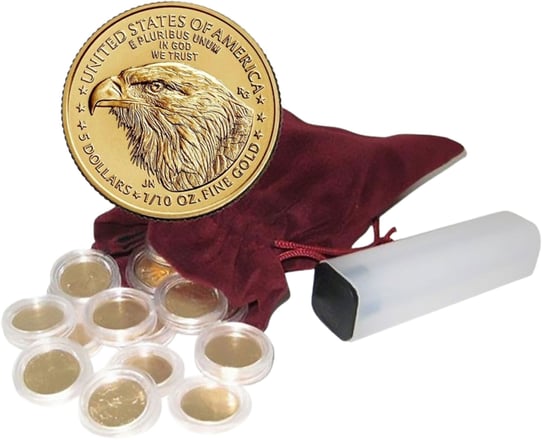 Der Gold American Eagle ist eine der weltweit führenden Bullion-Münzen, bekannt und geschätzt sowohl für ihre Schönheit als auch für ihre Qualität. Dieses Paket von zwanzig 1/10 Unzen Gold American Eagle 2023 (Typ II) Münzen ist eine ausgezeichnete Wahl für jeden, der auf der Suche nach Krisenschutz und Inflationsschutz ist.