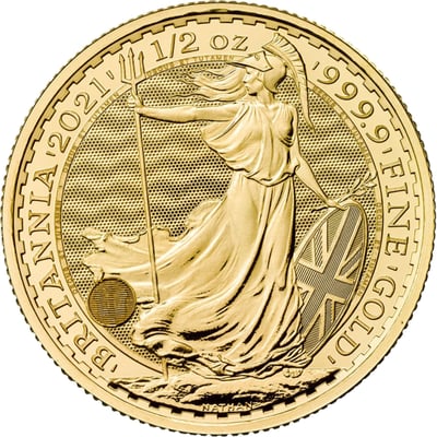 Reines Feingold: Die 1/2 Unze Britannia Goldmünze 2021 besticht durch 999,9er Feingehalt für höchste Qualitätsansprüche