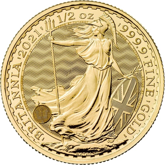 Die halbe Unze Goldmünze Britannia mit dem Jahrgang 2021 wurde erstmals im Jahr 1987 durch die British Royal Mint hergestellt. Im Laufe der Jahre wechselte die Mint die Legierung von 917/1000 auf 999.9/1000 und damit auch den Farbton. Die 2021er Gold Britannia ist eine reine Feingoldmünze mit dem 999,9er Feingehalt, welchen auch die ganze Unze besitzt.