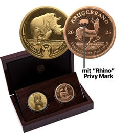 2 x 1 Unze Gold Big Five III & Krügerrand Satz Privymark Nashorn 2025 (Auflage: 100 | Polierte Platte)
