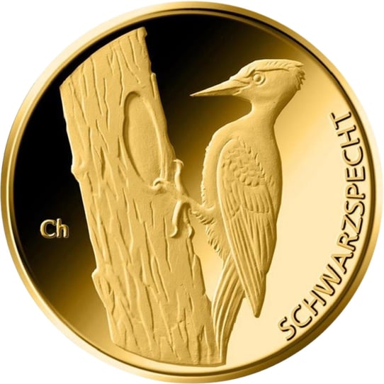 • Motiv: Das Motiv der Münze zeigt einen Schwarzspecht in seiner natürlichen Umgebung. Ein Kunstwerk, das die heimische Vogelwelt ehrt und gleichzeitig eine Hommage an die Präzision und Kunstfertigkeit deutscher Münzprägestätten ist.