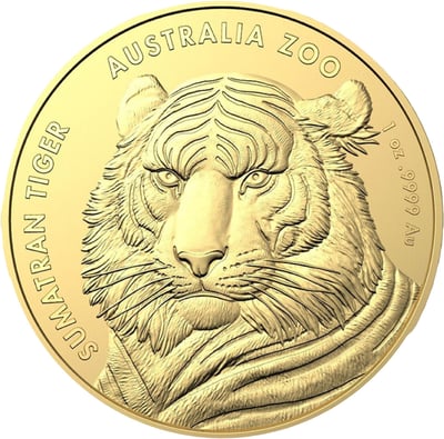 Die 1 Unze Gold Sumatra Tiger 2020 ist die erste Gold-Anlagemünze der neuen Zoo-Serie der Royal Australian Mint. Das Motiv der Münze zeigt uns ein Portrait eines Sumatra Tiger. Der starre und einprägende Blick des Tigers lässt schon vermuten, um was für ein stolzes und anmutiges Tier es sich bei dem Sumatra Tiger handelt. Um das Hauptmotiv ist der Schriftzug „Sumatra Tiger“, sowie „Australian Zoo“ zu lesen. Ebenfalls das Gewicht und die Feinheit.