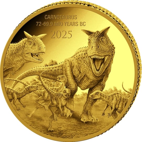 Faszinierende Goldmünze mit prähistorischem Motiv - Carnotaurus 2025