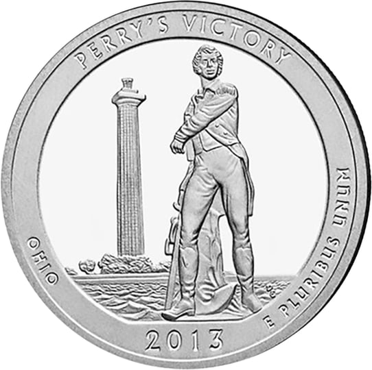 Die Motivseite der 5 Unze Perry’s Victory and International Peace Memorial 2013 aus der Serie „America the Beautiful“ wird der Kommandant Oliver Hazard Perry und das Friedensmemorial im US Bundessaat Ohio dargestellt. Die Münze wurde mit dem Schriftzug „E Pluribus Unum“ versehen. Auf der Wertseite der Münze ist der erste US Präsident George Washington (1732-1799) abgebildet. Die 5 Unze Silbermünze Perry’s Victory 2013 ist die 17. Ausgabe der ATB Serie.