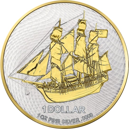 Auf der Vorderseite der Silbermünze befindet sich das Segelschiff „Bounty“ – bekannt aus dem Film und Roman „Die Meuterei auf der Bounty“, welches in glänzendem Silber erstrahlt. Der beiden Seiten der Münze wurden aufwendig coloriert. Als Highlight gilt der besondere Münzrand, welche ebenfalls nachteäglich mit edelstem 24k Feingold veredelt wurde. Auf der Rückseite ist das Portrait der Queen Elisabeth II. abgebildet sowie das Ausgabejahr. Besonders ist bei der Cook Island Münze die netzartige Strucktur um das Konterfei der Queen, welches als Sicherheitsmerkmal dient. Die Cook Islands als Nennwertgeber gelten als eigenständiges Territorium. Das Staatsoberhaupt ist die Queen Elisabeth II.