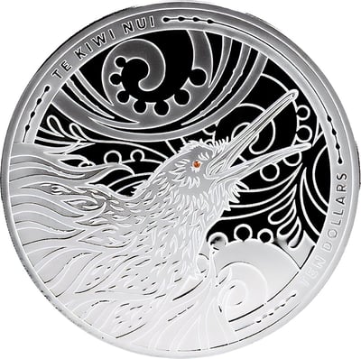 Die 5 Unzen schwere Silbermünze besticht durch ihre außergewöhnliche Gestaltung. Der vom renommierten Māori-Künstler Shane Hansen entworfene Kiwi-Vogel präsentiert sich in atemberaubender Detailtreue. Das charakteristische lange Schnäbelchen und das fein ausgearbeitete Federkleid zeugen von höchster Prägekunst. Als besonderes Highlight funkelt ein orangefarbener Kristall als Auge des nachtaktiven Vogels – ein Detail, das diese Rarität zu etwas ganz Besonderem macht.