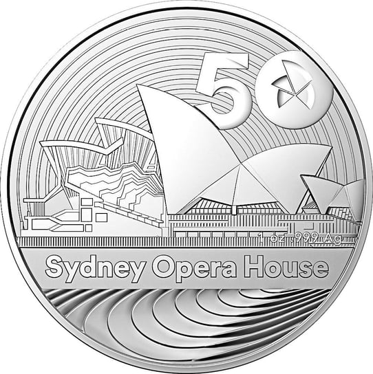 Das Design dieser Silbermünze ist ebenso beeindruckend wie das Gebäude, dem es gewidmet ist. Das Motiv zeigt das Sydney Opera House von Westen aus - eine Ansicht, die die einzigartige Silhouette des Gebäudes hervorhebt. Die Aufschriften "Sydney Opera House" sowie das Logo zum 50. Jubiläum vervollständigen das Design auf der Vorderseite.