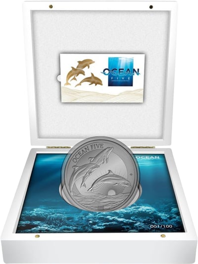 Die Münzen werden in höchster Prägequalität „Polierter Platte“ hergestellt und haben eine Feinheit 999,9/1.000. Die Silbermünzen der Ocean Five Serie sind durch die 100er Limitierung eine der seltensten 1kg Silbermünzen weltweit und somit gehören die Münzen zu den exklusivsten Silbermünzen, die es derzeit am Markt gibt.