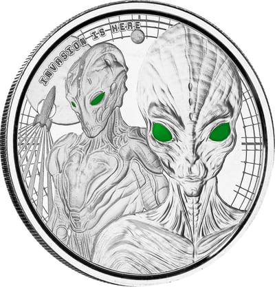 Erfahren Sie mehr über ein spektakuläres Anlageprodukt, das nicht nur das Herz von Münzsammlern höherschlagen lässt, sondern auch eine glänzende Zukunft in der Welt der Silber-Investitionen verspricht. Die "1 Unze Silber Ghana Alien 2023" ist eine streng limitierte Ausgabe, die mit einem außergewöhnlichen Design und einer beeindruckenden Farbgebung besticht. Durch ihre geringe Auflage von nur 1.500 Stück weltweit, wird diese Münze zu einer Rarität und einem Highlight jeder Sammlung.