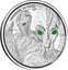 Die Vorderseite der Münze zeigt zwei mystische Aliens, deren grün colorierte Augen im Dunkeln leuchten, eine Darstellung, die an die Tiefen des Weltalls und die Geheimnisse unerforschter Planeten erinnert. Die Rückseite ziert das Staatswappen der Republik Ghana, umgeben von einer spiralförmigen Anordnung aus Kornkreisen, die das Geheimnisvolle und Unerklärliche dieser Sammlermünze unterstreichen.
