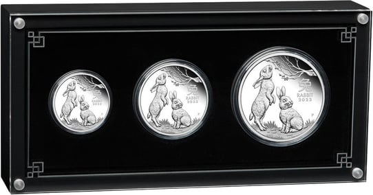 3 Münzen Silber Set Lunar III Hase 2023 (Auflage: 1.000 | Polierte Platte)