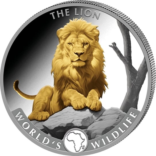 Majestätischer Löwe auf teilvergoldeter Silbermünze - Eine absolute Rarität der World's Wildlife Serie