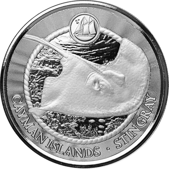 Die Vorderseite der Münze zeigt einen majestätischen Stachelrochen in seiner natürlichen Umgebung. Die detailreiche Gestaltung lässt den Betrachter in die faszinierende Unterwasserwelt der Karibik eintauchen. Besonders beeindruckend ist die kunstvolle Darstellung des Rochens, der sich elegant durch das kristallklare Wasser bewegt. Die Rückseite ziert das offizielle Wappen der Cayman Islands, umrahmt von wellenförmigen Strukturen, die die maritime Verbundenheit der Inselgruppe symbolisieren.