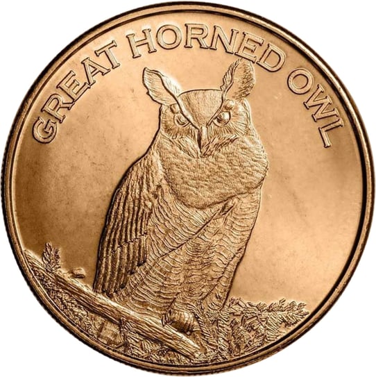 Exquisite Prägung: Detailliertes Uhu-Motiv auf glänzendem Feinkupfer, ein Sammlerstück mit realistischer Textur