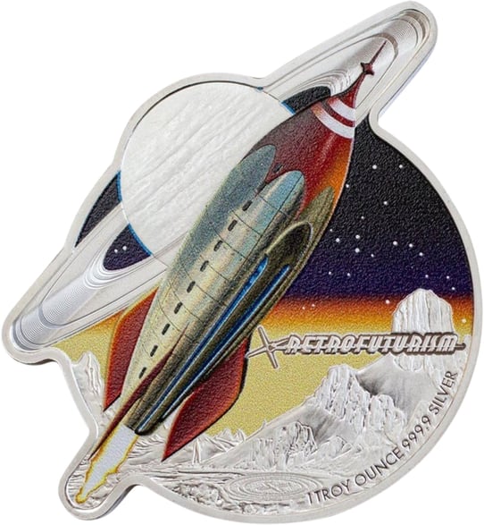 1 Unze Silber Retrofuturistische Rakete 2021 PP (Auflage:2.500 | coloriert | Polierte Platte)