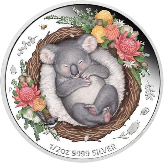Die Münze präsentiert auf der Vorderseite ein farbenfrohes Motiv eines schlafenden Koala-Babys, liebevoll eingebettet in ein Nest, umgeben von der einzigartigen australischen Flora und Fauna. Diese Szene wird durch das Gewicht und die Feinheit am unteren Münzrand perfekt ergänzt. Die Rückseite hält das bekannte Jody Clark-Bildnis von Königin Elizabeth II bereit, zusammen mit dem Nennwert und dem Prägejahr 2021.