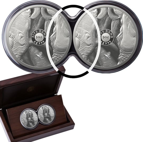 Das geniale Konzept dieser limitierten Edition zeigt sich besonders auf der Rückseite: Zwei Hälften eines Nashornkopfes verschmelzen beim Nebeneinanderlegen zu einem vollständigen Portrait. Werden mehrere Münzen arrangiert, entsteht sogar eine ganze Nashornherde! Die Vorderseite präsentiert ein ausgewachsenes Nashorn in kraftvoller Bewegung, ergänzt durch die Aufschriften "SOUTH AFRICA", "BIG FIVE 2025" und das südafrikanische Wappen.