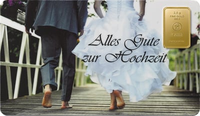 Der Inbegriff von Liebe und Wertbeständigkeit: 2,5 g Goldbarren Heimerle und Meule Alles Gute zur Hochzeit FineCard