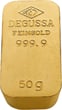 Als einer der renommiertesten Edelmetallhersteller in Deutschland steht Degussa für höchste Qualität. Der 50g Goldbarren ist aus reinem Gold mit einer Feinheit von 999,9/1.000 hergestellt. Er ist prägefrisch und verfügt über das internationale Gütesiegel „good-delivery“, das die aufgeprägten oder eingestanzten Merkmale wie Feinheit und Gewicht garantiert. Dieser Barren wird weltweit akzeptiert und gehandelt.