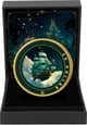 Die Rückseite zeigt ein prachtvolles Piratenschiff mit geschwellten Segeln. Captain Hooks Jolly Roger durchpflügt die mystischen Gewässer Nimmerlands. Die strenge Limitierung macht diese Münze zu einem begehrten Sammlerstück, das in keiner hochwertigen Kollektion fehlen sollte.