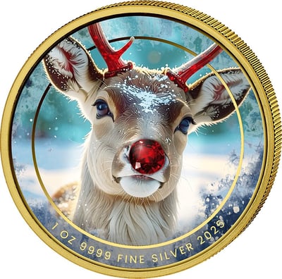 1 Unze Silber Rudolph das Rentier 2025 (Auflage: 100 | Rubin | teilvergoldet)