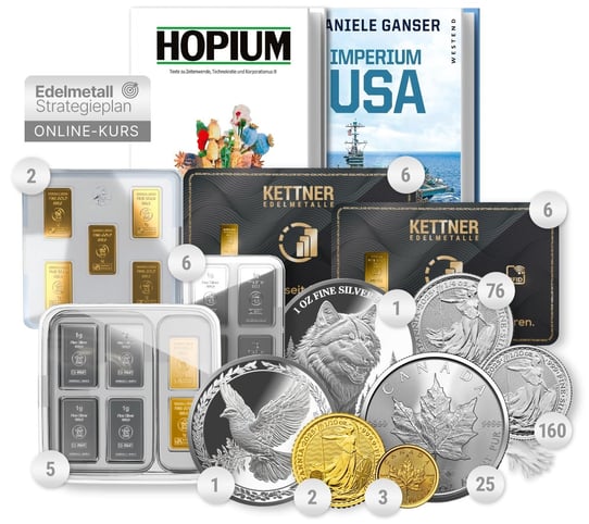 Mit unserem strategisch konzipierten Rettungs-Paket L bieten wir Ihnen maximale Sicherheit durch eine perfekt ausbalancierte Kombination aus Gold und Silber. Die sorgfältig gewählten Stückelungen vereinen optimalen Inflationsschutz mit der Flexibilität eines praktischen Tauschmittels - ideal für alle, die in unsicheren Zeiten auf echte Werte setzen.